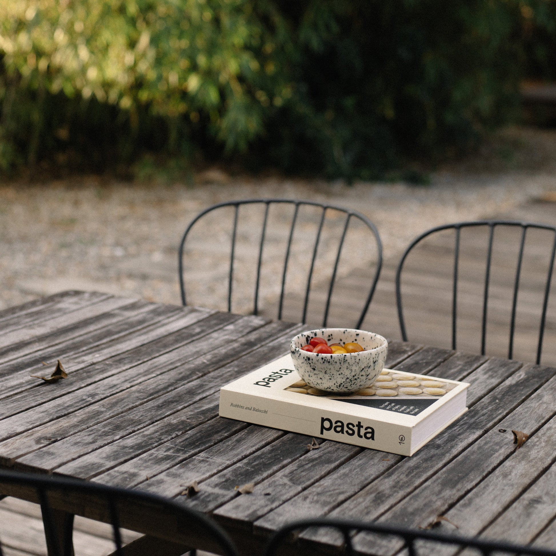 These modern, fun, yet classy bowls are designed to elevate any table and make any moment feel like a special occasion. Whether it's morning granola or chips with friends. Handcrafted ceramic bowl in our Maria glaze, white base with black speckles in glossy finish.